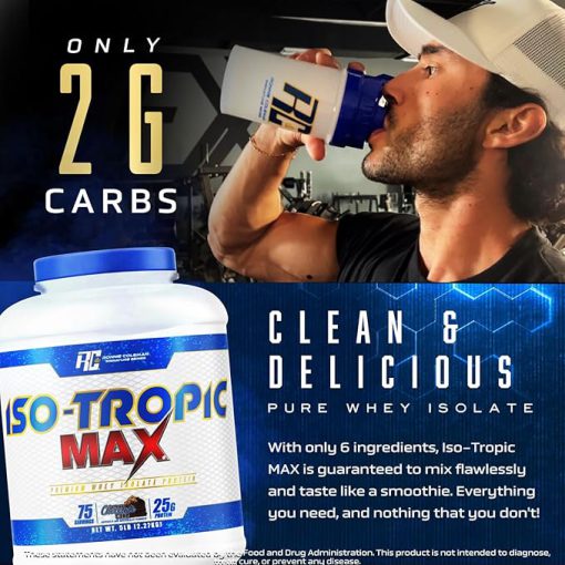 ایزوله پروتئین وی ایزو تروپیک مکس رونی کلمن RC Iso-Tropic Max در هر وعده 25 گرم پروتئین وی خالص ایزوله شده را ارائه می دهد و کمتر از 120 کالری را ارائه می دهد و فاقد قند است. بنابراین شما تمیزترین و کامل ترین پروتئین را در اختیار خواهید داشت. این محصول با مجموع 6 ماده تضمین می کند که به خوبی ترکیب می شود و طعمی شبیه به اسموتی دارد.