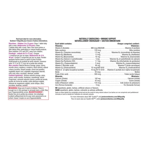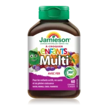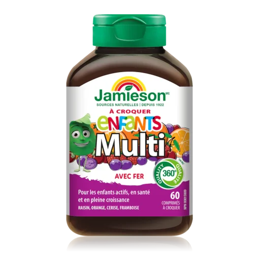 مولتی ویتامین کودکانه جمیسون 60 عدد Jamieson Kids Chewable Multi با تامین ویتامینها و مواد معدنی ضروری در قالبی خوشمزه و جذاب، به رشد و سلامت کلی کودکان کمک میکند و مصرف آن را برای کودکان آسان و لذتبخش میسازد.