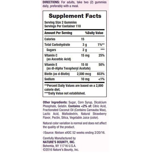 پاستیل تقویت کننده مو، پوست و ناخن نیچرز بونتی یک مکمل عالی برای کسانی است که به دنبال تقویت سلامت و زیبایی طبیعی خود هستند. ترکیب ویتامین C، ویتامین E، بیوتین و کلاژن هیدرولیز شده در این محصول به طور موثری به بهبود وضعیت مو، پوست و ناخنها کمک میکند و مصرف منظم آن میتواند به دستیابی به نتایج قابلتوجهی در طولانیمدت منجر شود.