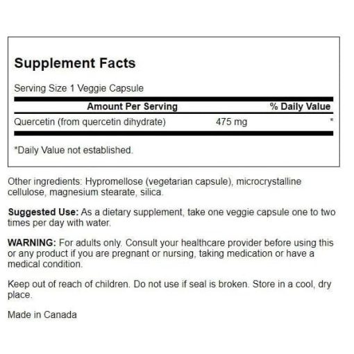 Swanson High Potency Quercetin شامل ترکیبات زیر است: