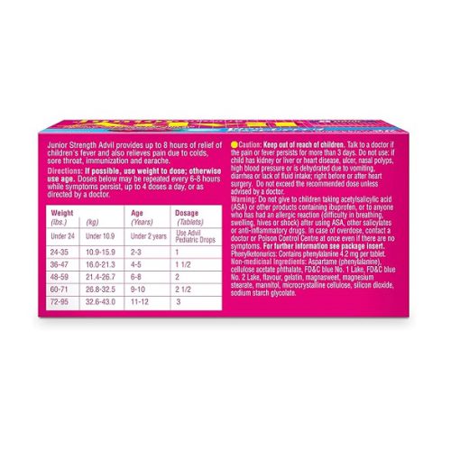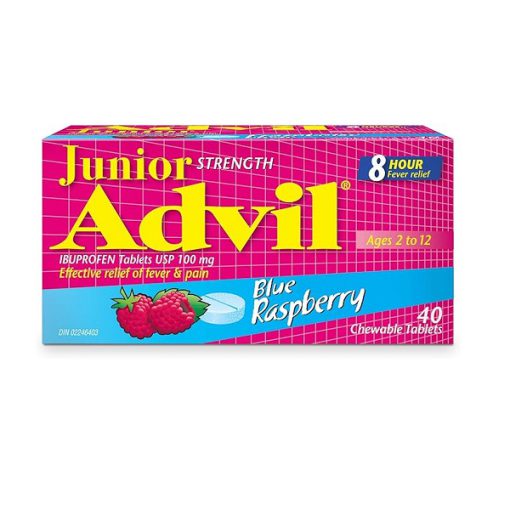 ماده فعال ایبوپروفن (NSAID) اولین کاهش دهنده تب / مسکن توصیه شده توسط پزشک اطفال است زیرا تب را سریعتر کاهش می دهد. قرص های جویدنی Advil Junior Strength یک راه آسان و خوشمزه است که به عنوان مسکن برای فرزند شما عمل می کند.