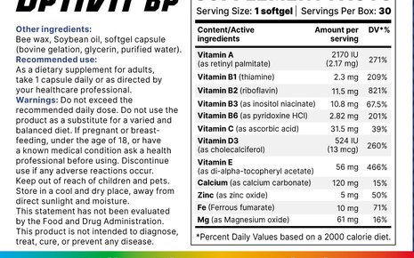 اپتی ویت بی پی بالکان فارما حاوی 12 ویتامین و مواد معدنی ضروری برای سلامتی و تندرستی کلی بدن است که از منابع طبیعی استخراج شده اند. اپتی ویت بی پی حاوی 30 سافت ژل برای حمایت از متابولیسم انرژی روزانه شما است.