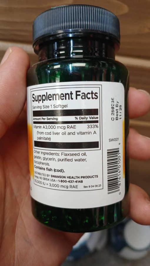 هر سافتژل ویتامین A سوانسون حاوی 3,000 میکروگرم ویتامین A است که از روغن جگر ماهی و پالمیتات ویتامین A بهدست آمده است. این ترکیب نه تنها جذب بالایی دارد بلکه بهخوبی توسط بدن مورد استفاده قرار میگیرد.