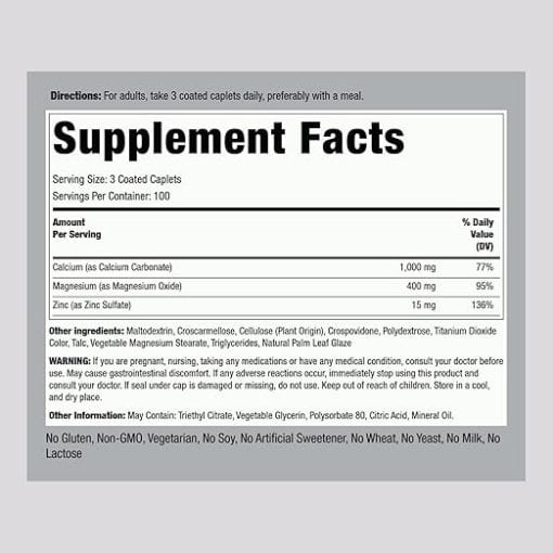 کلسیم منیزیم زینک پایپینگ راک حاوی 1000 میلی گرم کلسیم، 400 میلی گرم منیزیم، 15 میلی گرم زینک در هر سروینگ است.