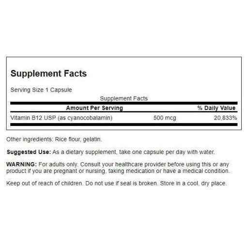 کپسول ویتامین B12 سوانسون 500 میلی گرم 250 عدد