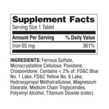 آهن یک ماده معدنی ضروری است که از تشکیل طبیعی گلبول های قرمز خون پشتیبانی می کند. دوز پیشنهادی برای بزرگسالان یک قرص در روز، ترجیحا همراه با غذا است. این مکمل غذایی برای تشکیل طبیعی گلبول های قرمز خون است که بدون گلوتن، لاکتوز یا طعم دهنده مصنوعی می باشد.