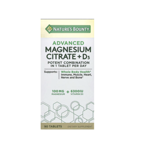 قرص منیزیم سیترات و ویتامین D3 نیچرز بونتی یکی از مکملهای پرطرفدار است که به سلامت کلی بدن کمک میکند. این مکمل ترکیبی از دو ماده مغذی اساسی است که به بهبود سیستم ایمنی، سلامت عضلات، قلب، اعصاب و استخوانها کمک میکند. این محصول شامل 100 میلیگرم منیزیم و 6300 واحد بینالمللی ویتامین D3 است که به جذب بهتر هر دو ماده مغذی در بدن کمک میکند.