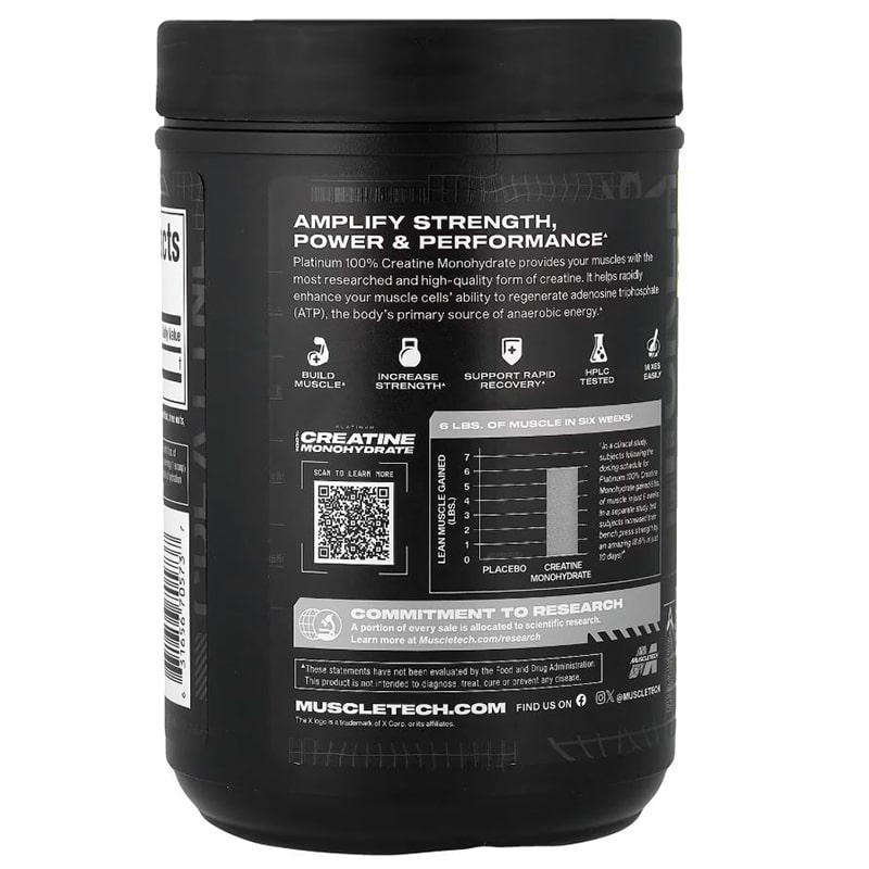 مکمل MuscleTech Platinum 100% Creatine به شما این امکان را می دهد که عرضه کراتین فسفات را در عضلات خود افزایش دهید که این امر به نوبه خود عضله سازی و افزایش قدرت عضلانی را به همراه دارد .