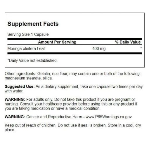 کپسول مورینگا سوانسون 60 عدد Swanson Moringa یک مکمل گیاهی است که از برگهای درخت مورینگا اولیفرا (Moringa Oleifera) تهیه شده است. این درخت، که به نام “درخت چوب طبل” نیز شناخته میشود، به دلیل ویژگیهای تغذیهای و درمانی منحصر به فردش در سراسر جهان مشهور است. با وجود اینکه مورینگا در غرب کمتر شناخته شده، در بسیاری از فرهنگها به عنوان یک منبع قوی از مواد مغذی و تقویتکننده سلامت مورد استفاده قرار میگیرد. این مکمل شامل برگهای خشکشده و آسیابشده مورینگا است که در کپسولهای آسان مصرف موجود است.