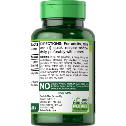 Nature’s Truth E 1000 IU با فرمول قوی و خالص خود، یک گزینه ایدهآل برای افرادی است که به دنبال افزایش مصرف ویتامین E در رژیم غذایی خود هستند. این محصول با تأمین مقدار زیادی از ویتامین E در هر کپسول و ویژگیهای خاص خود، به حفظ سلامت عمومی بدن و تقویت سیستم ایمنی کمک میکند. اگر به دنبال مکملی با کیفیت بالا و خالص برای تأمین نیازهای ویتامینی خود هستید، Nature’s Truth E 1000 IU میتواند انتخاب مناسبی باشد.