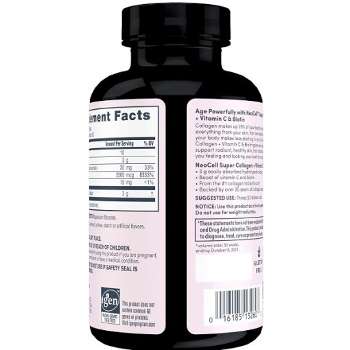 سوپر کلاژن، ویتامین سی و بیوتین نئوسل NeoCell Super Collagen Vitamin C Biotin یک مکمل با کیفیت ساخته شده برای بهبود سلامت پوست، مو، ناخن و مفاصل است. این محصول ترکیبی از کلاژن هیدرولیز شده، ویتامین C و بیوتین را ارائه میدهد که هر کدام از آنها مزایای خاصی دارند.