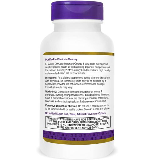 روغن ماهی سنتری 1000 میلی گرم 120 عدد 21st Century Fish Oil یکی از مکملهای معروف برای تأمین اسیدهای چرب امگا 3 است. این مکمل، با استفاده از کنسانتره روغن ماهی تقطیر شده مولکولی، به حمایت از سلامت قلب و عروق و فراهم کردن مزایای متعدد بهداشتی کمک میکند.