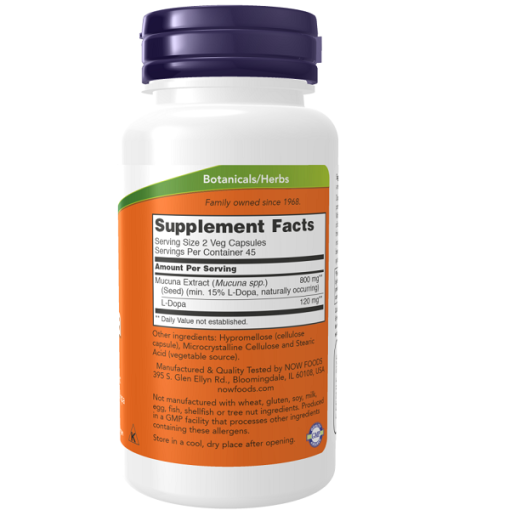 NOW Dopa Mucuna یک مکمل غذایی است که عصاره موکونا را با استاندارد 15٪ L-Dopa (پیشساز دوپامین) فراهم میآورد. دوپامین، یک انتقالدهنده عصبی مهم در مغز، نقش مهمی در افزایش لذت و علاقه به زندگی دارد. عصاره موکونا (Mucuna pruriens) از دیرباز در سیستم آیورودا در هند به عنوان یک درمان طبیعی مورد استفاده قرار گرفته است.