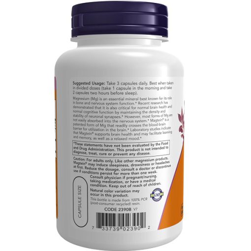 برای بهرهمندی از فواید مکمل، توصیه میشود که روزانه 3 کپسول NOW Magtein® را در دوزهای منقسم مصرف کنید. به طور خاص، مصرف یک کپسول در طول روز، ترجیحاً در اواسط بعد از ظهر و دو کپسول یک ساعت قبل از خواب، به بهبود اثرات آن کمک میکند و میتواند به حفظ عملکرد شناختی و بهبود کیفیت خواب کمک کند.