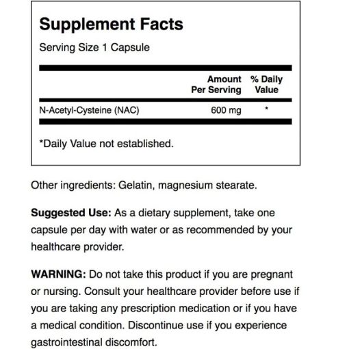 N-Acetyl-Cysteine (NAC): 600 میلیگرم در هر کپسول.