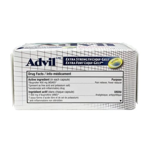 مسکن اکسترا استرنگ ادویل 50 کپسول Advil Extra Strength حاوی ایبوپروفن است که می توند به تسکین درد و تب و تسکین درد میگرن و علائمی مانند حالت تهوع و حساسیت به نور و صدا کمک کند.. این ایبوپروفن Extra Strength Advil در به شکل ژل مایع عرضه می شود و می تواند درد طولانی مدت را تا 8 ساعت ارائه دهد.