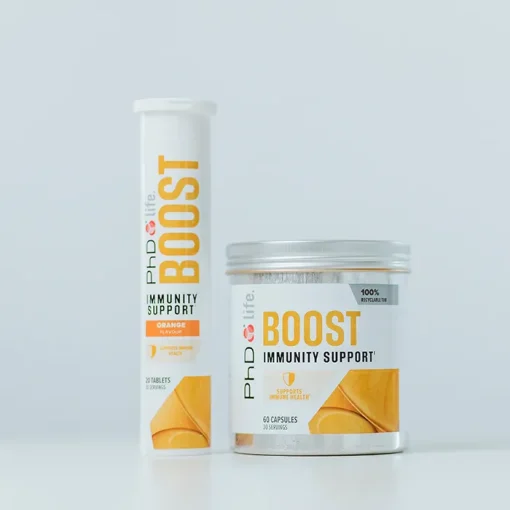 PhD BOOST IMMUNITY SUPPORT یک مکمل تقویت کننده سیستم ایمنی است که به شما کمک می کند برای خود یک زره در برابر بیماری ها بسازید و تضمین می کند که تحت هر شرایطی سالم باقیمی مانید.