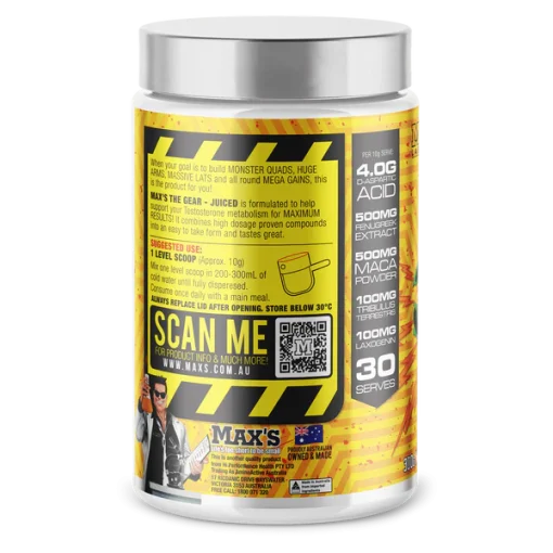 تست بوستر مکسس MAX’S The Gear Juiced بر اساس ترکیبی از مواد غذایی اثبات شده و عصارههای گیاهی برای حمایت از اهداف تمرینی شما طراحی شده است. این مکمل شامل ترکیباتی مانند دی اسپارتیک اسید، عصاره تخم شنبلیله، پودر ماکا ارگانیک، عصاره آشواگاندا و تریبولوس ترستریس است که هر کدام به نحوی به افزایش سطح تستوسترون کمک میکنند.