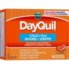 تسکین دهنده سرماخوردگی و آنفولانزا دی کویل Vicks DayQuil Cold & Flu محصولی به شکل کپسول های مایع است که به تسکین علائم سرماخوردگی و آنفولانزای شما کمک می کند. این محصول یکی از قدرتمندترین مسکن هایی است که بدترین علائم سرماخوردگی و آنفولانزا را درمان می کند. Vicks DayQuil Cold & Flu دارای فرمولی غیر خواب آلود است تا بتوانید در طول روز به فعالیت های خود ادامه دهید.