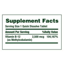 با متیل کوبالامین ب12 از متابولیسم انرژی، سلامت قلب و سیستم عصبی حمایت کنید. هر قرص 2500 میکروگرمی متیل کوبالامین است که شکل پیشرفته و فعال ویتامین B-12 می باشد و به تبدیل غذا به انرژی سلولی کمک می کند.