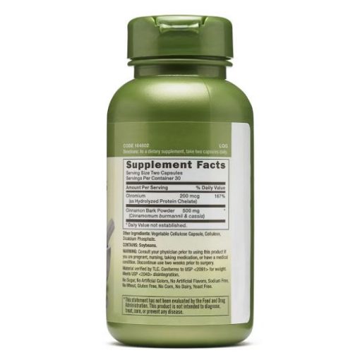 این مکمل با نام کامل Cinnamon & Chromium – 60 Capsules (30 Servings) عرضه میشود. در هر وعده مصرفی شامل دو کپسول، مقدار ۵۰۰ میلیگرم پودر پوست دارچین بههمراه ۲۰۰ میکروگرم کروم (به شکل Hydrolyzed Protein Chelate) وجود دارد. این ترکیب با هدف اصلی پشتیبانی از بدن در مدیریت قند خون و کمک به متابولیسم مواد غذایی طراحی شده است. هر بسته شامل ۶۰ کپسول بوده و برای ۳۰ وعده مصرف کفایت میکند.