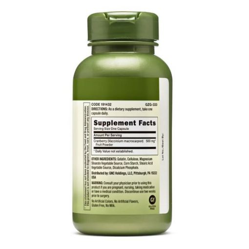 کپسول کرنبری جی ان سی GNC Cranberry Fruit 500mg یکی از مکملهای گیاهی پرطرفدار در دنیا است که در هر بسته شامل ۱۰۰ عدد کپسول میباشد. این محصول حاوی ۵۰۰ میلیگرم پودر میوه کرنبری در هر کپسول است. فرمولاسیون آن ساده و خالص طراحی شده و بدون گلوتن، گندم، لبنیات، ذرت، مخمر، رنگ یا طعم مصنوعی و حتی قند عرضه میشود. به همین دلیل برای افراد با رژیمهای خاص یا کسانی که نسبت به این دسته مواد حساسیت دارند، گزینهای مطمئن محسوب میشود. برند GNC از سال ۱۹۳۵ در زمینه مکملهای غذایی فعال بوده و همواره بر کیفیت و ایمنی محصولات خود تأکید داشته است.