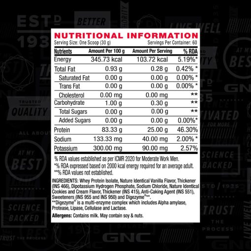 این محصول توسط برند معتبر GNC که بیش از ۸۰ سال تجربه در تولید مکملهای غذایی دارد عرضه میشود. اعتبار این برند به دلیل تستهای سختگیرانه، تضمین کیفیت و پشتیبانی علمی باعث شده است که GNC AMP Pure Isolate به عنوان انتخاب شماره یک ورزشکاران شناخته شود.