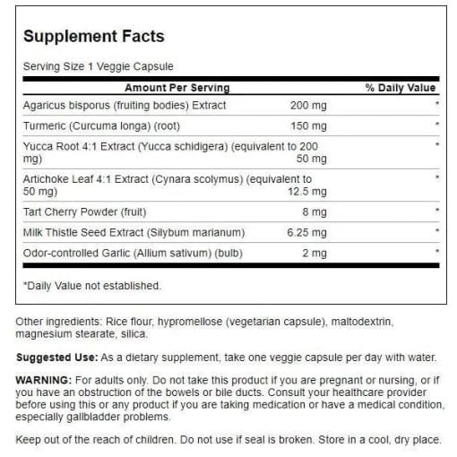 عصاره دانه خار مریم (Milk Thistle Seed Extract) – 6.25 میلیگرم : محافظت از سلولهای کبدی و افزایش سمزدایی بدن.