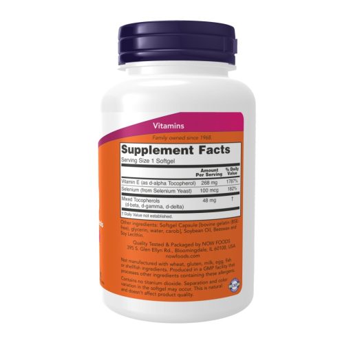 ویتامین ای 400 ناو 100 عددی حاوی 268 میلی گرم ویتامین ای همراه با ۱۰۰ میکروگرم سلنیوم و 48 میلی گرم توکوفرول های مخلوط یک محافظت آنتی اکسیدانی است.