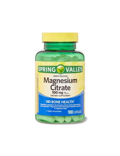 مکمل منیزیم سیترات اسپرینگ والی Spring Valley Magnesium Citrate مکملی ضروری برای حفظ سلامت استخوانها، اعصاب و عضلات است. این مکمل با فرمول منیزیم سیترات (Magnesium Citrate) ساخته شده که نسبت به سایر اشکال منیزیم، جذب سریعتر و مؤثرتری در بدن دارد. هر کپسول حاوی ۱۰۰ میلیگرم منیزیم خالص است و برای استفاده روزانه بزرگسالان طراحی شده است تا تعادل الکترولیتی بدن و عملکرد طبیعی ماهیچهها حفظ شود.